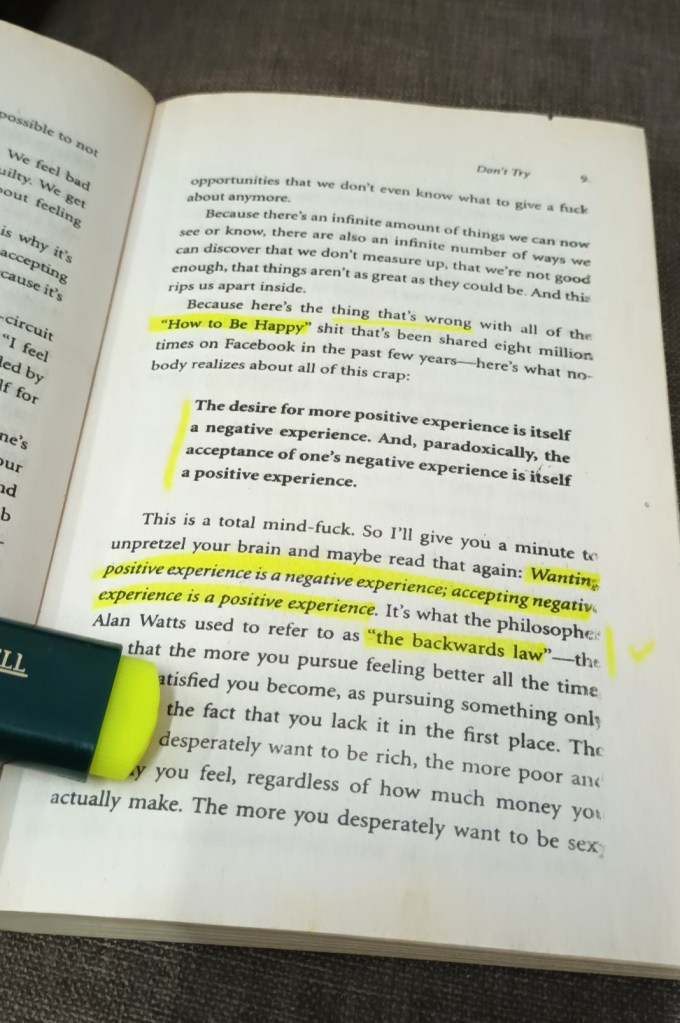 The desire for a more positive experience or itself a negative experience. And, paradoxically, the acceptance of one’s negative experience is itself a positive experience.