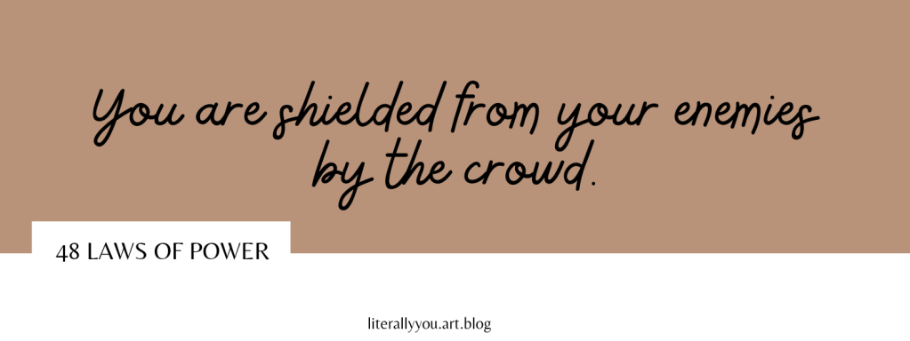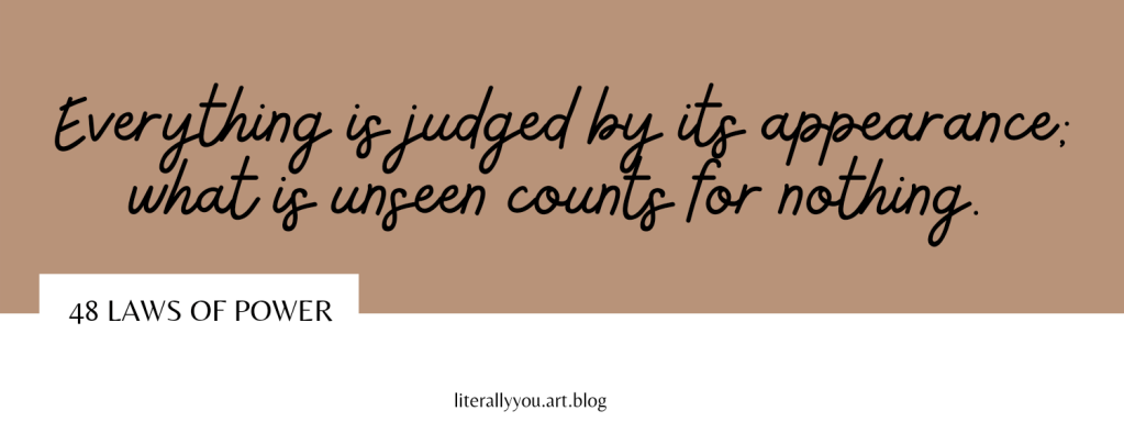 Everything is judged by its appearance; what is unseen counts for nothing. Never let yourself get lost in the crowd, then, or buried in oblivion. Stand out. Be conspicuous, at all cost. Make yourself a magnet of attention by appearing larger, more colorful, more mysterious than the bland and timid masses.